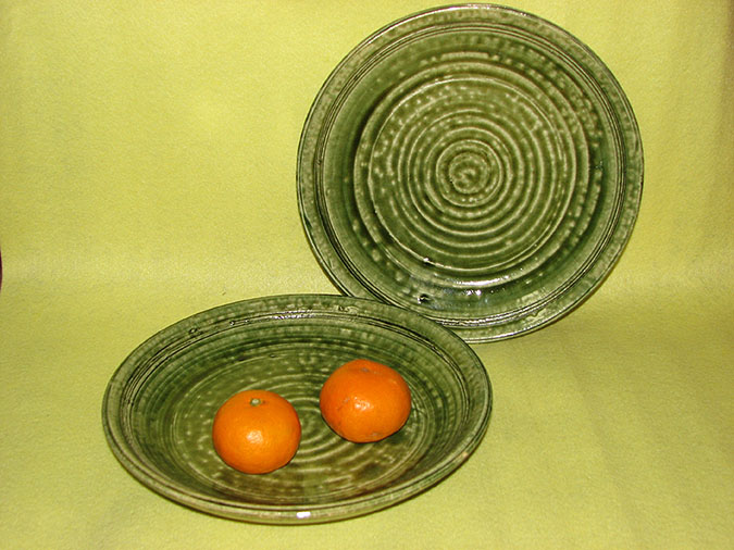2008.9.13 「雄央窯」で陶芸をはじめ、もうすぐ5年になります。はじめた頃は陶器と磁器の区別ができる程度でした。粘土をこねくり、素焼きをして釉薬をかけもう一度焼くと完成です。始めた頃に比べれば多少は良くなったという程度であまり進歩していません。陶芸はかたちもさることながら釉薬がむずかしい。土が鉄分を含んでいるのかいないのか、窯の上か下かで微妙に違う温度、炎は酸化炎か還元炎か、いろいろな要素が複雑に作用して同じものを再現することやイメージどおりのものはなかなか出来ません。芸術には程遠く日用雑器を作って満足しています。 毎日使う器も自作のものが増えてきました、出来上がると、新しいもの好きな妻はすぐ料理を盛り付けて「料理と器の相性ぴったり」「器も料理もお互いを高めあっているねー」などと言って賑やかな食卓にしています。 近頃、だんだん増えてきました、最近、ろくろに挑戦を始めたのでその傾向に拍車がかかる恐れがあります、在庫処分をしないといけません。友人たちにそのうち有名になると入手困難になるから、今のうちにと押し付けています。中には世辞のいいやつがいて褒めまくってくれるもので、私も気を良くしてそれに乗っかっています。褒めてくれる人のおかげで長続きしそうな気がしています。 うんちくを言うわりに器をガチャガチャぶつけるお母さん、費やした時間を考えるともう少し大事に扱ってもらいたいと思っていながら「欠けちまうじゃん」と言えない私。これからも美術館巡りなどで目を肥やし、腕を磨いて皆さんに喜んでいただける作品と呼べるようなものを作りたいものです。「雄央窯」の先生ご夫妻に感謝です。 自慢の作品上から下に ・stt0001・皿 ・stt0002・暖炉 ・stt0003・写真 ・stt0004・皿2トルコ還元 ・stt0005・孟宗竹盛りつけ皿酸化 ・stt0006・織部深はち酸化 ・stt0007・織部浅はち ・stt0008・織部深はち酸化 ・stt0009・平皿2 ・ ・stt0010・焼き閉め花器 ・stt0011・焼き閉め花器 ・ |